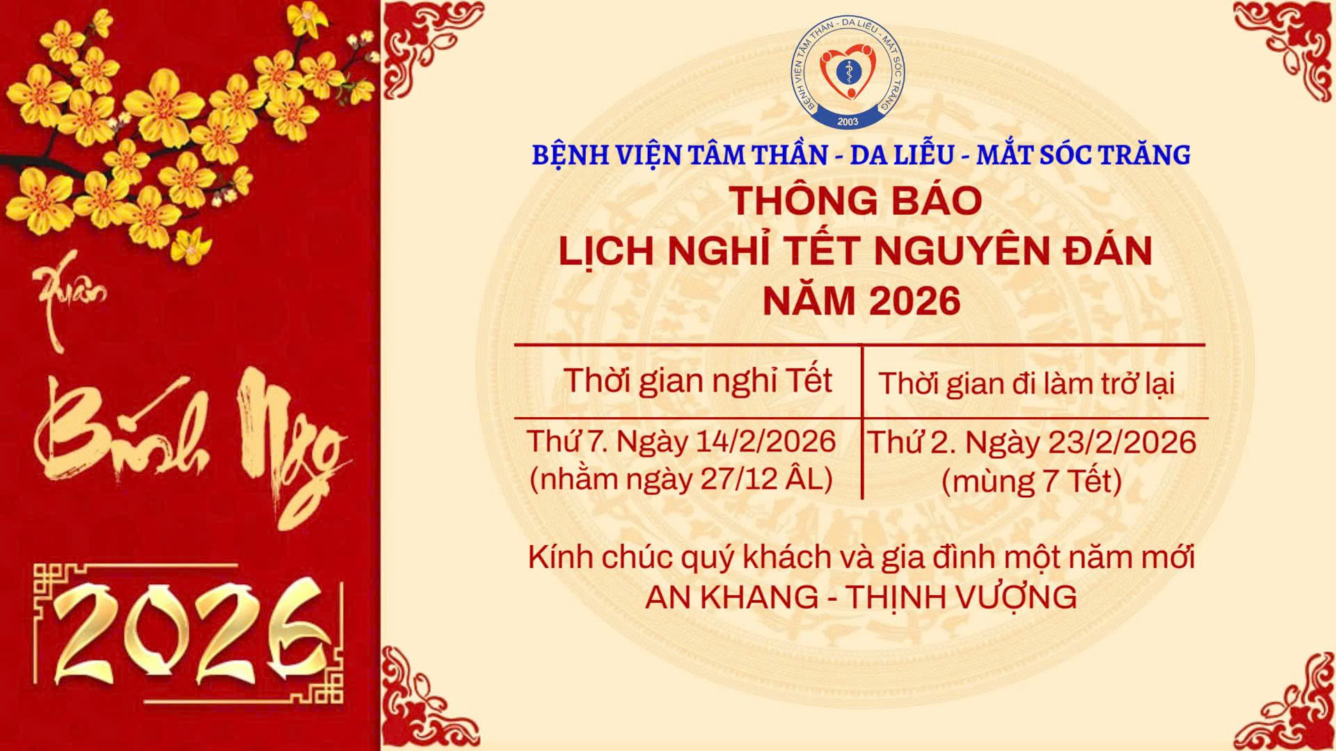BỆNH VIỆN CHUYÊN KHOA 27 THÁNG 2 TỈNH SÓC TRĂNG