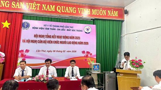 Phát biểu tại Hội nghị, BSCKII Võ Quốc Trứ - Phó Giám đốc Sở Y tế Thành phố Cần Thơ đã biểu dương những kết quả mà Bệnh viện Tâm Thần - Da Liễu - Mắt Sóc Trăng đã đạt được trong năm 2025, đồng thời bày tỏ kỳ vọng Bệnh viện tiếp tục nâng cao chất lượng và trình độ chuyên môn để phục vụ người dân tốt hơn. Lãnh đạo Sở cũng cam kết đồng hành cùng Bệnh viện tháo gỡ những khó khăn vướng mắc trong thời gian tới.